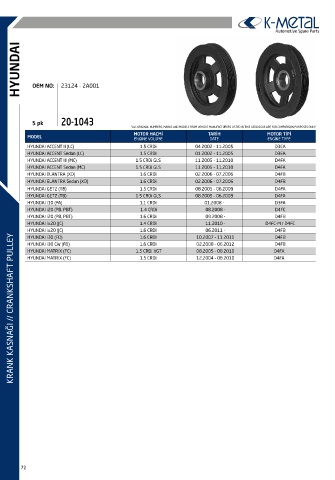 Automotive Spare Parts 20-1043 KRANK KASNAĞI // CRANKSHAFT PULLEY 72